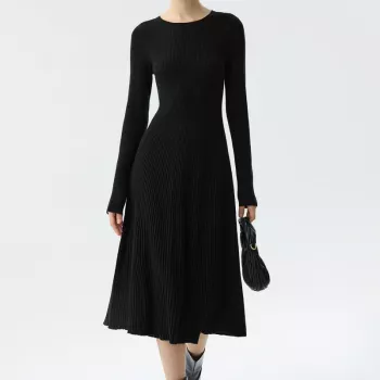 Women’s Long Knit Dress – Slim Fit A-Line Office Lady Woolen Casual Dress