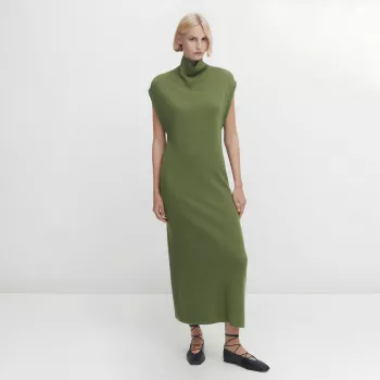 Elegant Minimalist A-Line Knit Dress with High Neck