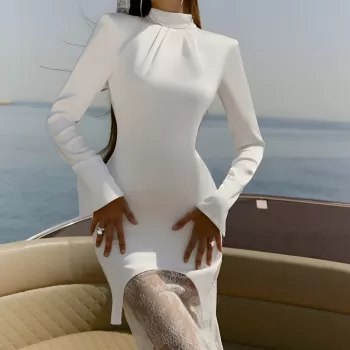 Elegant Minimalist Extended Knit Dress with High Neck for Women