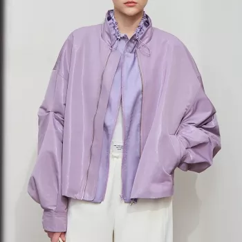 Glossy Silky Short Jacket with Double Neck and Zipper