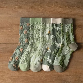 Vintage Floral Harajuku Cotton Socks for Women – Korean Jacquard Style