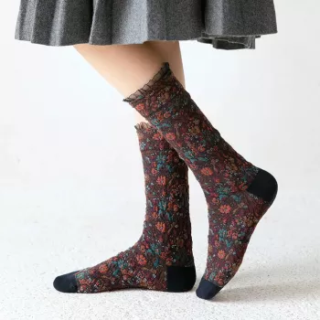 Vintage Floral Embossed Ruffle Socks