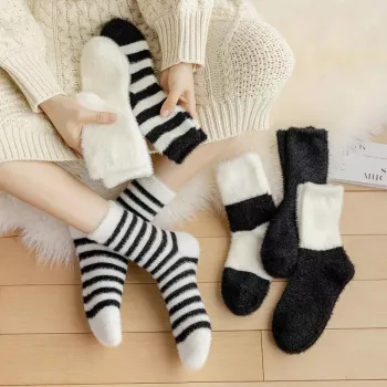 Cozy Autumn Thick-Fiber Mink-Lined Mid-Calf Socks – Non-Shedding, Warm & Comfy Sleep Socks with Stripes