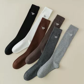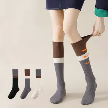 Colorful Knee-High Knitted Cotton Socks for Women